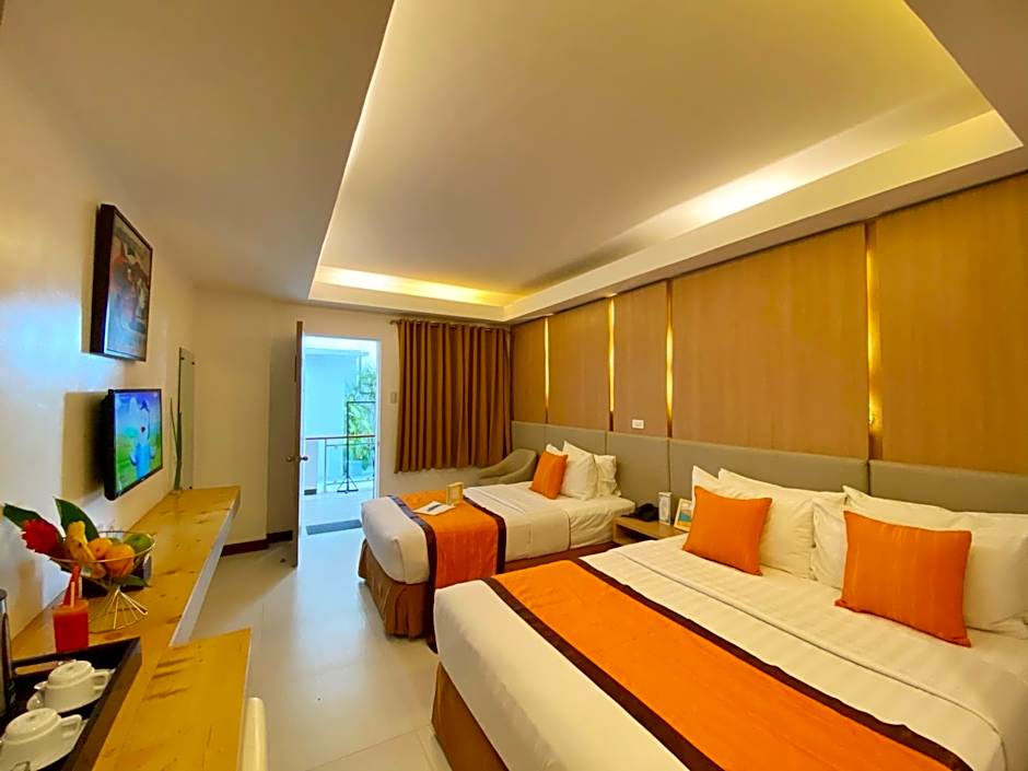 Located on the second and third floors, rooms feature a private balcony. Please note that rooms do not have views of the beach.